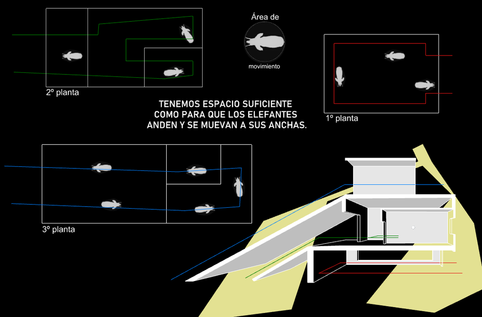Creo que ahora he llegado a comprender un poco más lo que me estabais pidiendo, he intentado hacer un espacio que tuviera más sitios para desplazarse, he buscado más información sobre los elefante y he intentado recrear de la mejor manera posible el espacio que tenía pensado.